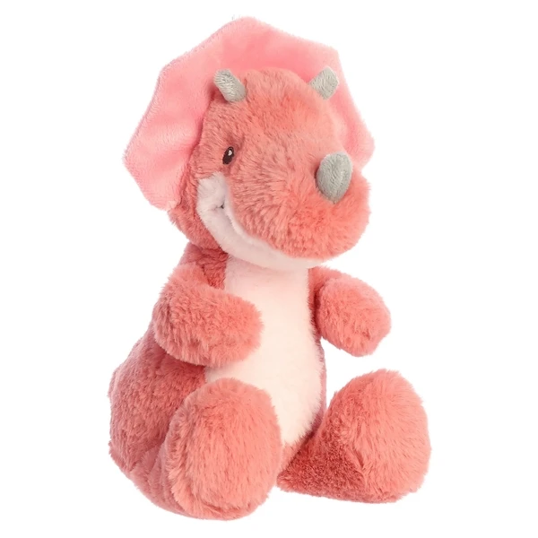 The triceratops was around 68 million years ago, but even so, youÂ’ve probably heard of herbivore. Fierce and fearsome, these dinos could even defeat the mighty T-Rex, but the Baby Safe Tai the Eco-Friendly Plush Triceratops by Ebba is a lot softer than the creatures of old and knows that it’s love that will conquer all. Measuring approximately 12 inches, this plush triceratops is unbelievably soft and fluffy, and is wearing a coat in a beautiful coral shade that will really catch a childÂ’s eye. Instantly recognizable with her ‘three horned noseÂ’ – which is how this dino got their name – the Baby Safe Tai the Eco-Friendly Plush Triceratops by Ebba features a beautifully embroidered face, while her trio of horns are made from a soft plush gray fabric thatÂ’s as cuddly as the rest of her. A true eco-warrior, this stuffed triceratops began life as a humble plastic water bottle – 8 humble plastic bottles, to be exact – which have been cleverly crafted into yarn to create the super soft coat she is wearing, as well as the cuddlesome fiber fill that gives her such an adorable squeezability. Continuing with the strict ‘no plasticÂ’ pledge, the Baby Safe Tai the Eco-Friendly Plush Triceratops by Ebba even has embroidered eyes and other facial features, with the biggest grin to show just how happy she is to be here.