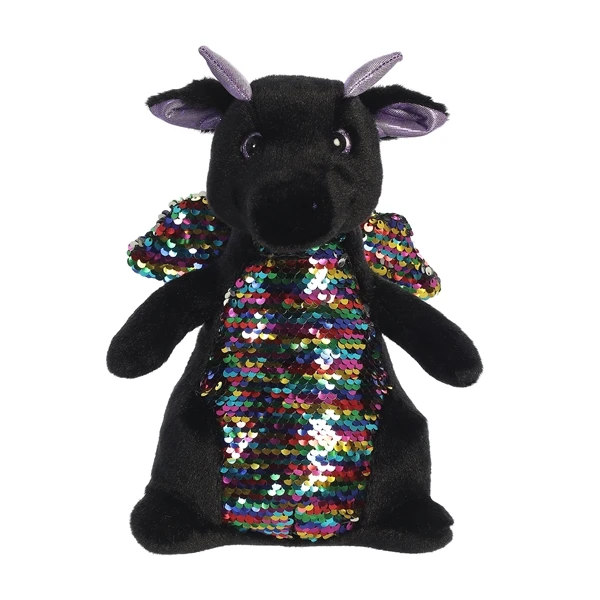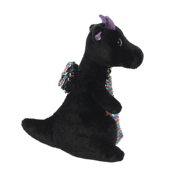 Black Plush Dragon with Reversible Rainbow Sequins by Aurora