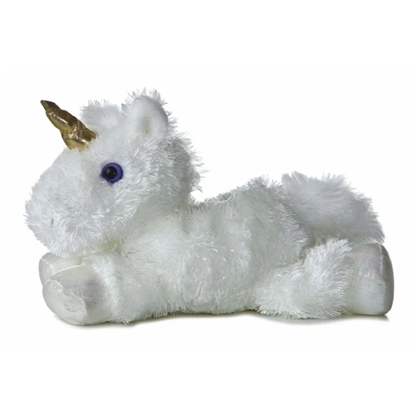 Travel to a magical fantasy world with Celestial the Stuffed Unicorn Mini Flopsie . This seven inch plush unicorn by Aurora is all white with some very amazing added features that make this one stuffed unicorn that any little wizard will love through the ages. Celestial the Stuffed Unicorn Mini Flopsie features a gold horn that sits between two beautiful purple eyes. A member of the Aurora family, Celestial the Stuffed Unicorn Mini Flopsie is made from high quality child safe materials and meets or exceeds all U.S. safety standards. Recommended for ages 3 and up, this little unicorn stuffed animal is surface washable.