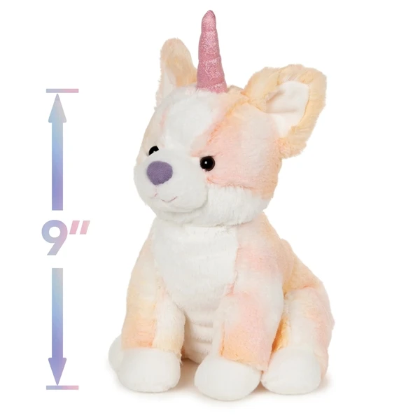 Within the magical kingdom there are all sorts of rare and beautiful creatures that most mere mortals are not allowed to see, and only the very best humans get to set eyes on these amazing animals. The Corgicorn Plush Corgi with Unicorn Horn by Gund is one such creature. Half dog and half unicorn, this plush corgi has inherited all the cuteness of a puppy, with all the magic of a mythical creature. Measuring approximately 9 inches, the Corgicorn Plush Corgi with Unicorn Horn by Gund has a coat that looks like a bowl of all your favorite ice cream flavors all swirled into one – pastel oranges, pinks, and of course a creamy white -, with a shimmering pink horn on top of her head. Incredibly soft and fluffy, this stuffed corgi gives the most amazing cuddles, and will magically make all your cares fade away. The perfect choice for corgi lovers and unicorn lovers alike, the Corgicorn Plush Corgi with Unicorn Horn by Gund is suitable for anyone over the age of 1, and although it would look wonderful taking pride of place on a shelf, this corgi stuffed animal can also be surface washed so you can cuddle it to your heart’s content.