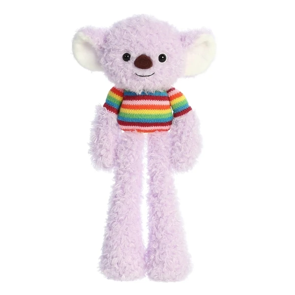 Koalas are used to the hot, sunny weather back in Oz, which is why the Dingbits Plush Koala in Sweater by Aurora needs something to keep her warm now that sheÂ’s left her home down under. Wearing a beautifully colorful stripey sweater, this plush koala is ready to take on whatever challenges come her way; from extreme cuddling to movie marathons, the Dingbits Plush Koala in Sweater by Aurora will be right by your side, looking all snug and cozy. Measuring around 15 inches from head to toe, this stuffed koala has impossibly long legs that are super floppy, making her a delight to hug and to hold, while her embroidered face has the most delightful smile you will ever see. With vibrant shades of red, orange, blue, yellow, and green, the sweater sheÂ’s wearing has short sleeves like a t-shirt, so you could say what sheÂ’s wearing is koala-tee. Filled with bean pellets to make her super flopsy, the Dingbits Plush Koala in Sweater by Aurora has fluffy lilac fur thatÂ’s a dream to snuggle up with, and white plush-lined ears that just add to the general level of cuteness. No matter how old you are, cuddling up to this koala stuffed animal will bring comfort and joey, and thereÂ’s no need to be embearassed about it, either.
