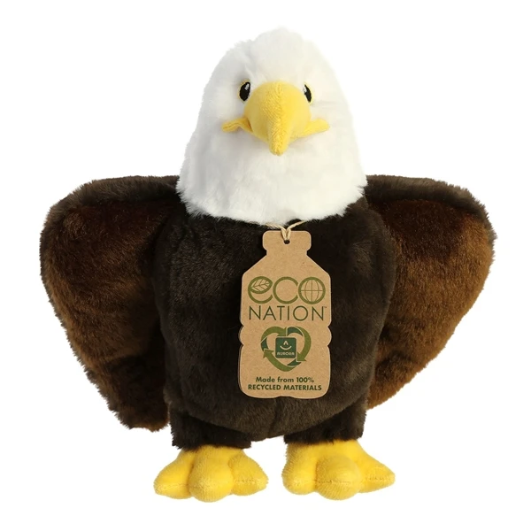 For over 35 years, Aurora World has been an industry leader in helping imaginations come alive. Aurora World Inc. is one of the world’s most popular plush companies with over 25,000 retail outlets worldwide. Their products can be found in major zoos, department stores, gift shops, and at StuffedSafari.com, of course! Aurora stuffed animals are incredibly well made with a focus on durability, safety, and most importantly, cuteness. In 2018, Aurora World began transitioning their products into “Eco-Friendly” plush. Aurora is proud to be able to contribute to our environmentÂ’s sustainability while delivering smiles to millions of people all over the globe. As with the entire line of plush by Aurora, Eco Nation Stuffed Eagle is made with child safe materials and meets or exceeds all U.S. safety standards. The Eco Nation Stuffed Eagle is recommended for ages 3 and up, and surface washable.