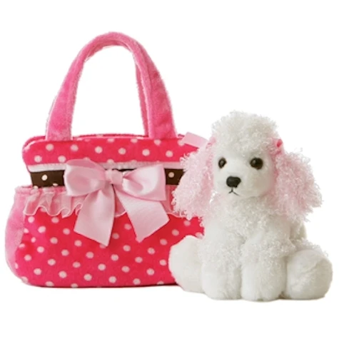 Looking for a special gift for your favorite little girl or boy? This precious Fancy Pals Pink Polka Dot Pet Carrier with Plush Poodle by Aurora is sure to do the trick! Made of a soft pink plush adorned with polka dots and a pink bow this plush pet carrier is really going places! The little stuffed poodle is perfect for the little girl on the go. The removable plush poodle can also be replaced with any of Aurora’s mini flopsie stuffed animals. Some days you need to carry a plush poodle to the park and other days you need to take a stuffed giraffe to the grocery store! As with all of the quality stuffed animals made by Aurora, the Fancy Pals Pink Polka Dot Pet Carrier with Plush Poodle is made with all new child safe materials and meets or exceeds all U.S. safety standards. Recommended for ages three and up, we suggest surface washing for this pink plush purse and little plush poodle.