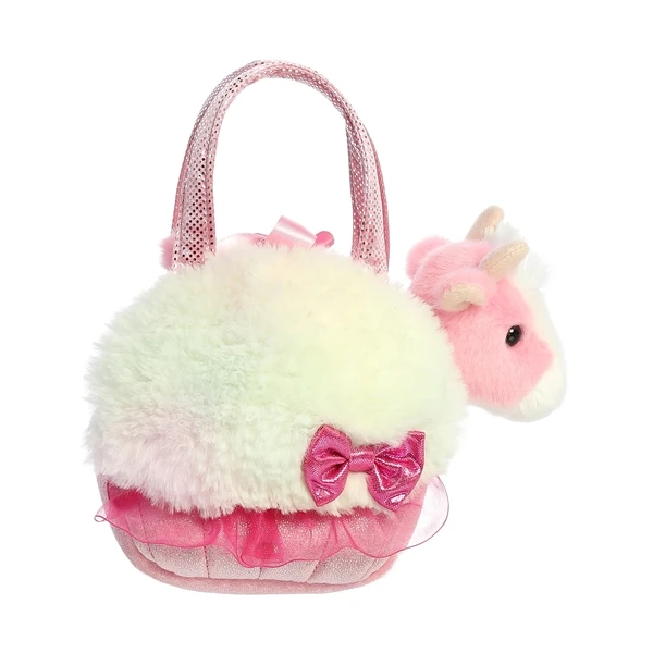 ThereÂ’s no way you could be in a bad mooood when you have the Fancy Pals Plush Pink Cow with Sweets Rainbow Pink Bag by Aurora to keep you company. Udderly adorable and super sweet, this plush cow and carrier set has all the strawberry milkshake feels, from her pretty pink and white markings, to the gloriously fluffy pink and white bag that holds her. Measuring approximately 7 inches, the Fancy Pals Plush Pink Cow with Sweets Rainbow Pink Bag by Aurora has satin, tulle, and shimmer to satisfy even the most glamorous owner, and because the stuffed cow is removeable, you can use the bag, play with the cow, or bring them both along on your adventures. Filled with recycled plastic beans and soft fiber fill, this cow stuffed animal is the ideal size for pint-sized cuddles when youÂ’re reading a book or watching a moovie, and because she has a bean-bag body, she will mold into the shape of your hand for the perfect fit. Cows love the land, of course, and just because the Fancy Pals Plush Pink Cow with Sweets Rainbow Pink Bag by Aurora will be living in the lap of luxury, it doesnÂ’t mean sheÂ’s not still concerned about environmental issues; thatÂ’s why she uses eco-friendly materials that are both recycled and recyclable. And because this sweet cow stuffed animal is suitable for ages 3+, sheÂ’ll be able to educate the younger generations on the importance of protecting the planet, too.