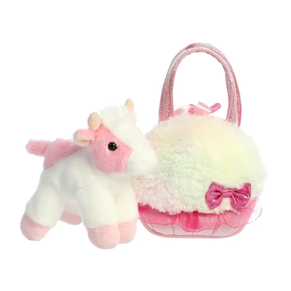 Fancy Pals Plush Pink Cow with Sweets Rainbow Pink Bag by Aurora