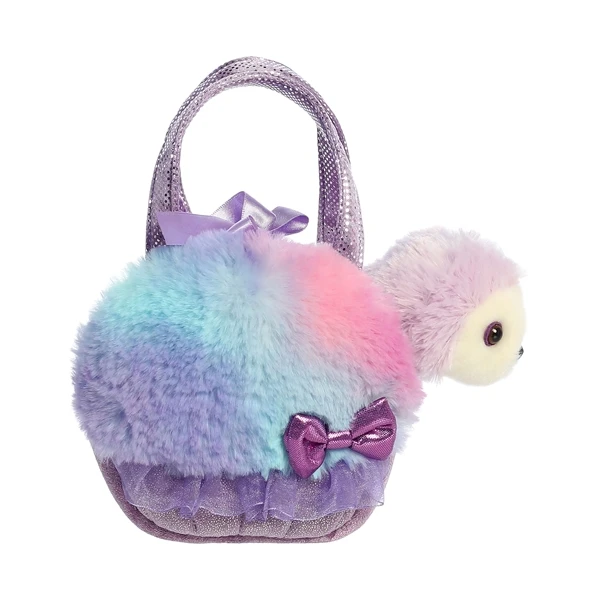 YouÂ’ll have twice the fun with the Fancy Pals Plush Purple Sloth with Sweets Rainbow Purple Bag by Aurora, because not only are you getting an adorable plush sloth, but youÂ’re also getting a fancy schmancy bag to carry her in, too. Measuring approximately 6 inches, the Fancy Pals Plush Purple Sloth with Sweets Rainbow Purple Bag by Aurora looks ready for any special occasion, because she comes in all kinds of beautiful shades, like pink, purple, and blue. Made from a super soft and snuggly plush fabric, this stuffed sloth can be removed from the bag for cuddles and fun, while the bag would make a real fashion statement worthy of Milan, New York, and Paris catwalks. With shimmers fit for any prince or princess, the Fancy Pals Plush Purple Sloth with Sweets Rainbow Purple Bag by Aurora also comes with satin bows, glimmering handles, and even some purple tulle to give the bag a darling tutu finish. Part of an eco-friendly range, this sloth stuffed animal is filled with recycled plastic bean pellets and soft fiber fill to ensure sheÂ’s super cuddly, and is suitable for any fashionista aged 3+.