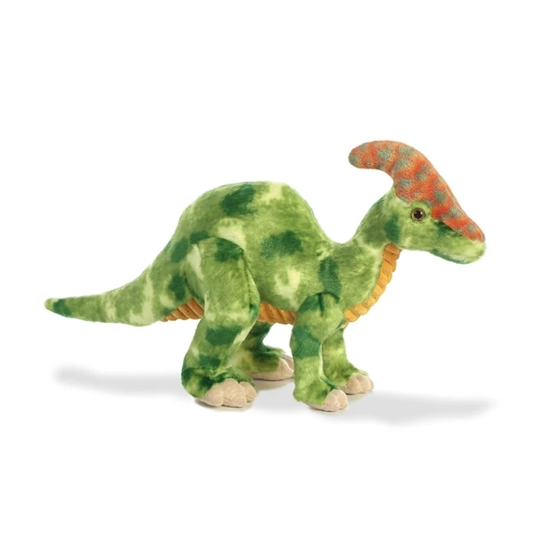 Aurora World Inc. is one of the world’s most popular plush companies with over 25,000 retail outlets worldwide. Their products can be found in major zoos, department stores, gift shops, and at StuffedSafari.com, of course! Aurora stuffed animals are incredibly well made with a focus on durability, safety, affordability, and most importantly, cuteness. The Green Parasaurolophus Stuffed Animal by Aurora is made with all new, child safe materials and is rigorously tested to ensure that it meets or exceeds all U.S. safety standards. Recommended for ages three and up, we suggest surface washing for this stuffed parasaurolophus.