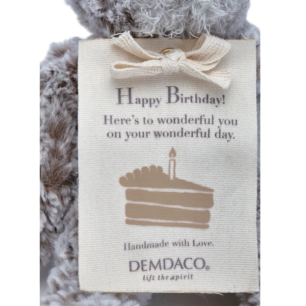 We all like cake and candles on our special days, but once the cake has been eaten and the candles blown out, our celebration can fade into the past pretty quickly. Not so with the Happy Birthday Mini Giving Bear 8.5 Inch Plush Teddy Bear by Demdaco, though. Hand made to last through years of love, this plush teddy bear will be a permanent reminder of the day, bringing with it feelings of love, friendship, and happiness with every cuddle. Measuring approximately 8.5 inches, the Happy Birthday Mini Giving Bear 8.5 Inch Plush Teddy Bear by Demdaco has a beautiful, tousled, two-tone coat of the softest plush, in neutral shades of gray and brown that will suit young and old alike. Unbelievably soft and tactile, this stuffed teddy bear also comes with a special bookmark hang tag that is printed with a simple birthday cake, and a delightful message to wish the birthday boy or girl a very happy day. Expertly under stuffed for added snuggleability, the Happy Birthday Mini Giving Bear 8.5 Inch Plush Teddy Bear by Demdaco also sports longer than usual arms for the best kind of cuddles ever.
