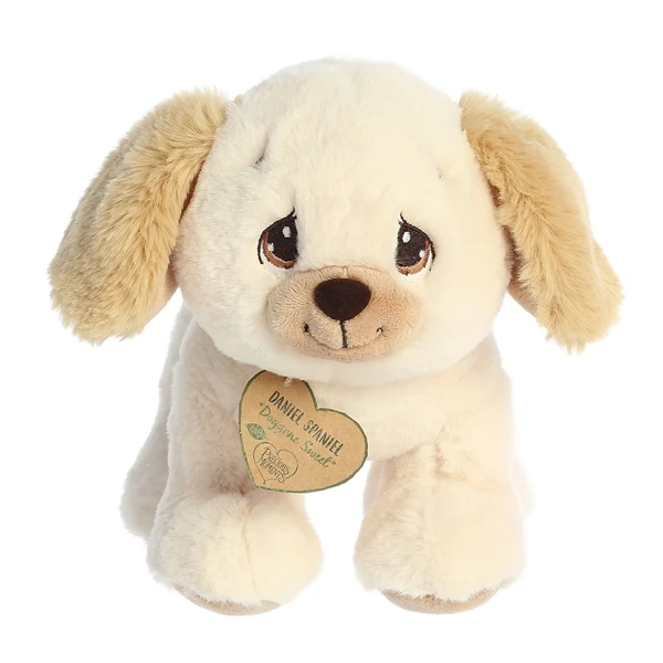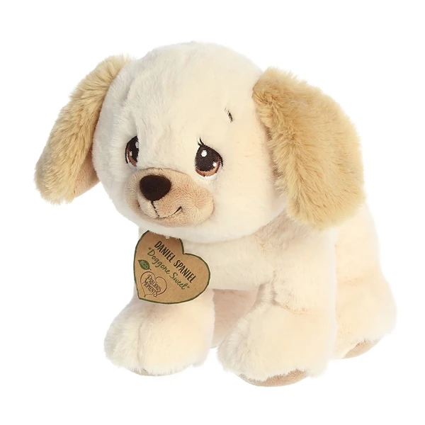 Spread the puppy love around with the Precious Moments Eco Daniel Spaniel Stuffed Animal Dog by Aurora. Measuring approximately 9 inches, this happy hound is heart meltingly cute, with beautiful teardrop-shaped embroidered eyes, and the sweetest smile you will ever see. In a cuddly cream color with slightly darker accents, this plush dog will show you why a manÂ’s (or womanÂ’s, boyÂ’s or girlÂ’s) best friend is their pooch, because this utterly gorgeous spaniel will be there for you through thick and thin. The Precious Moments Eco Daniel Spaniel Stuffed Animal Dog by AuroraÂ’s kindness doesnÂ’t just apply to humans, though, because this stuffed dog is made using 100% recycled and recyclable materials to ensure he is gentle on the planet, too. With eco-friendly fiber fill and recycled plastic bean pellets to give him extra squishiness, the Precious Moments Eco Daniel Spaniel Stuffed Animal Dog by Aurora is suitable for all ages, so he will be enjoyed by pet pawrents both young and old. With a very special message to give, this dog stuffed animal also comes with a heart-shaped hang tag around his neck, on which is printed some sweet words of love which will raise a smile every time they are read.