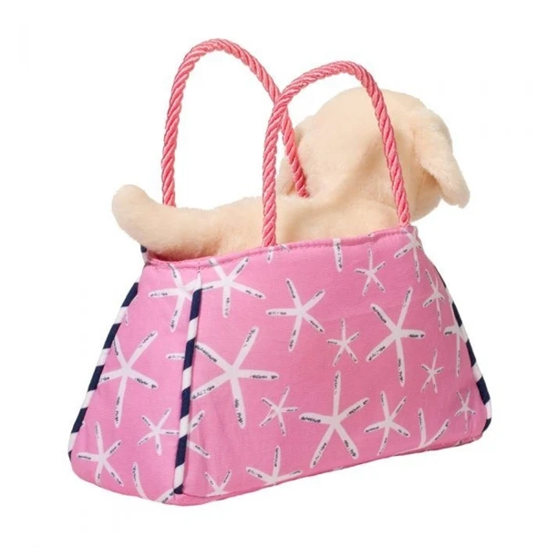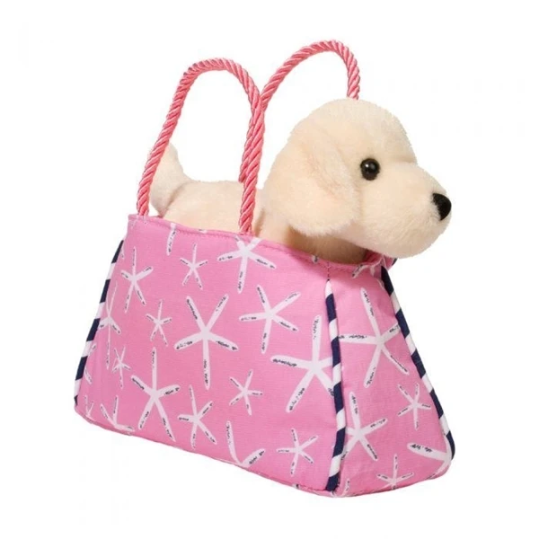 One of the worldÂ’s most classic dogs just got a unique touch! Sea Star Sassy Sak with Plush Yellow Lab by Douglas isnÂ’t just any other yellow lab stuffed animal. This one comes with its very own bag! A Sassy Sak to be exact. You can take your new best friend with you anywhere you go just by slipping it on your shoulder. ItÂ’s like their own personal dog house. The convenience of the Sassy Sak means you can bring other stuffed animals that might not have their own bag, or maybe you can fit as many Sassy Sak Pets in your arms as possible! Each animal comes with a uniquely designed Sassy Sak, in this case, a stunning pink fabric with sea stars all over! To make this already unique lab even more special, this Sassy Sak even has its own look! With a little flap at the top, itÂ’s shaped more like a fashion purse than most other Sassy Saks. This bag isnÂ’t just convenient, itÂ’s a fashion statement. So whether you have a yellow lab as a pet and have always wanted a stuffed animal version, or youÂ’re looking for a hypo-allergenic dog to keep around, Sea Star Sassy Sak with Plush Yellow Lab by Douglas can do the job and look fancy at the same time.